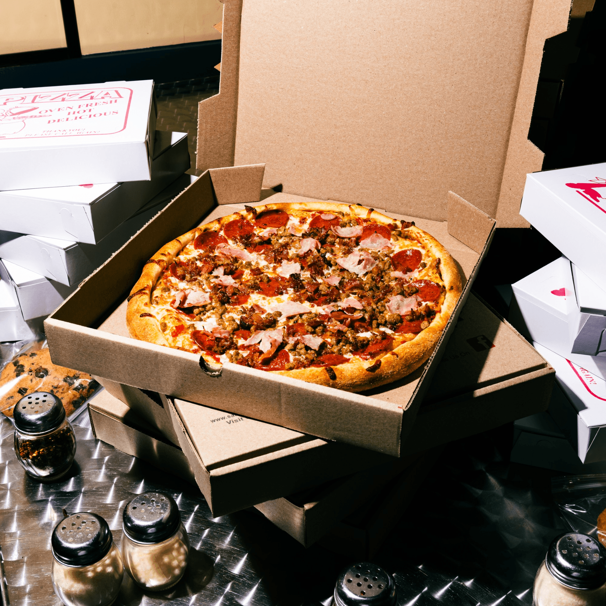 We are more than a slice. We are friends, family, and Friday nights made better. Whether you dine in, take out, or order delivery, the vibe stays warm and the pizza stays unforgettable. Your new pizza routine is here. One slice and you are family. Hungry? Good.